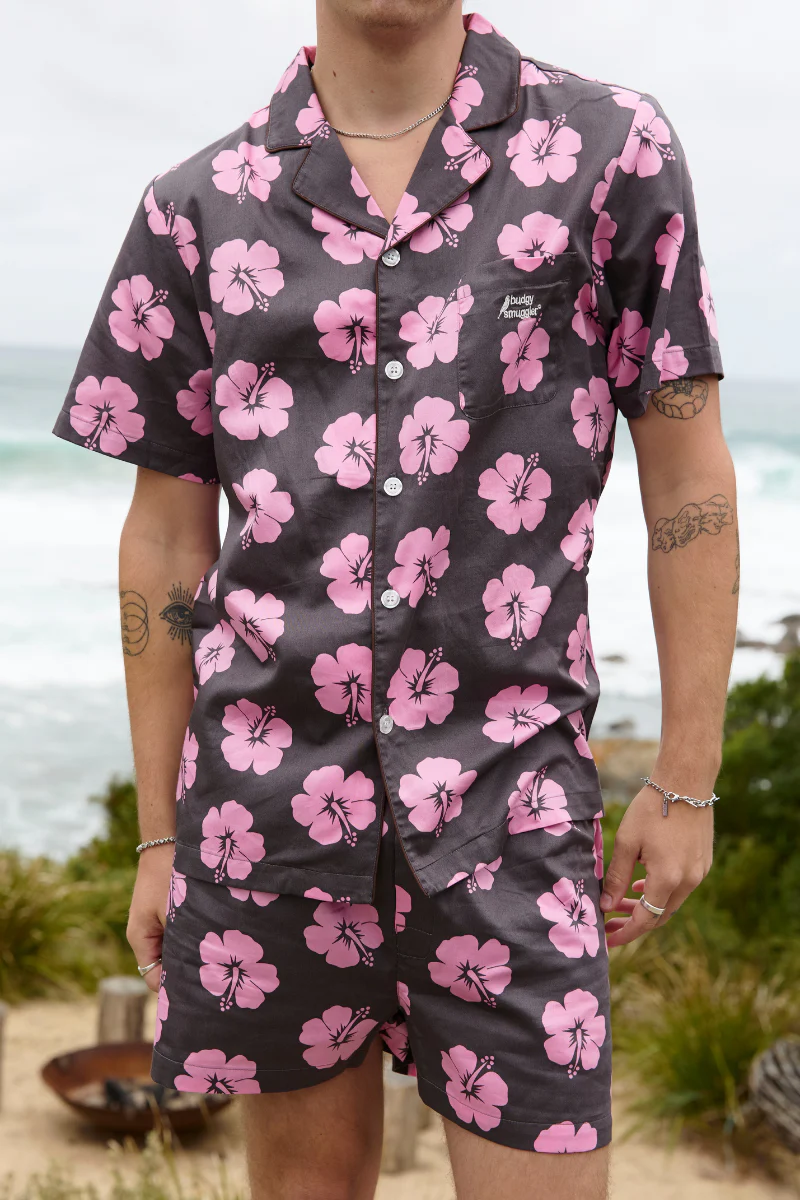 Pyjama Hommes en Hibiscus Rose et Marron